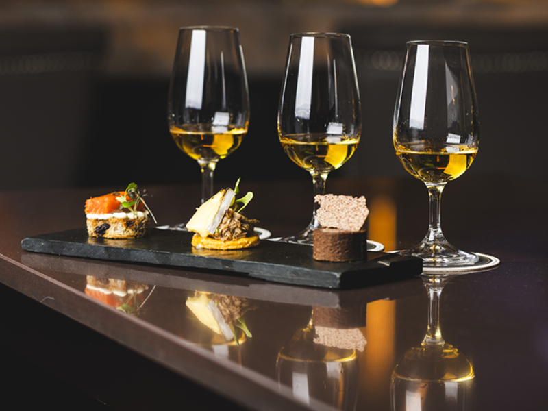 Disfrute de una experiencia sensorial de aromas y sabores en una ambiente elegante y de estilo moderno. Una degustación de tres etiquetas de Single Malts cuidadosamente seleccionadas por nuestra Head Bartender, acompañadas de las creaciones de nuestro Chef Ejecutivo, Facundo Stefano. Una propuesta que combina la excelencia de los destilados con lo mejor de la gastronomía.